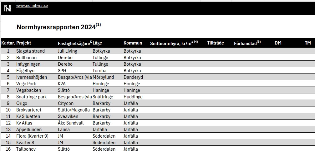 *Normhyresrapporten finns även för Uppsala, Göteborg och Malmö