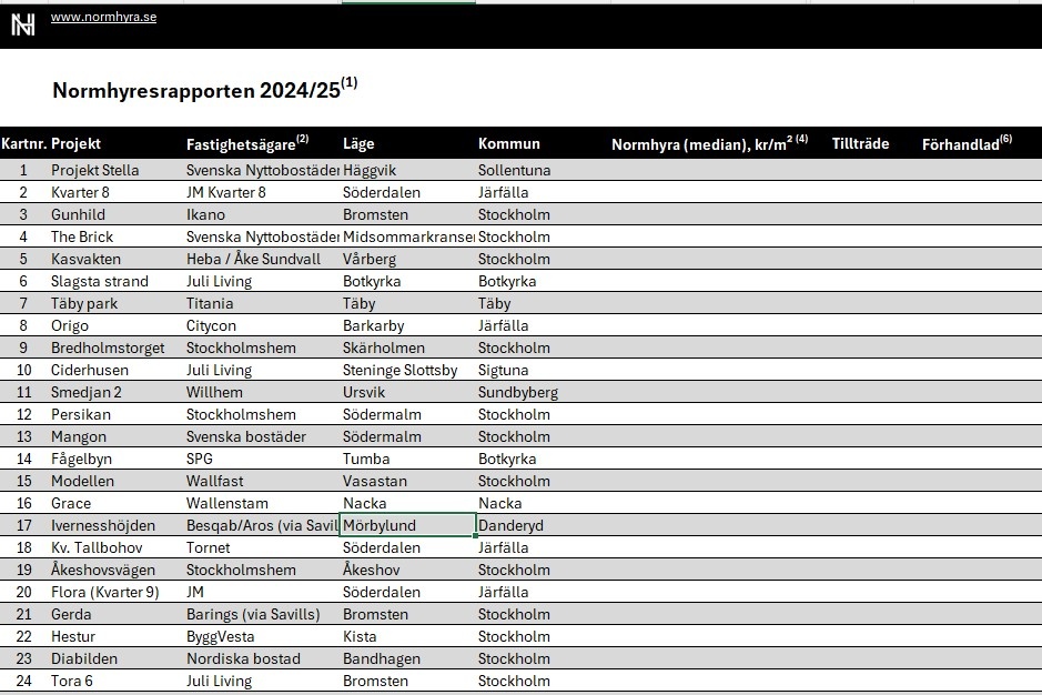 Rapporten ger en tydlig översikt av normhyror och andra projekt- eller lägenhetsspecifika parametrar vilket ökar jämförbarheten